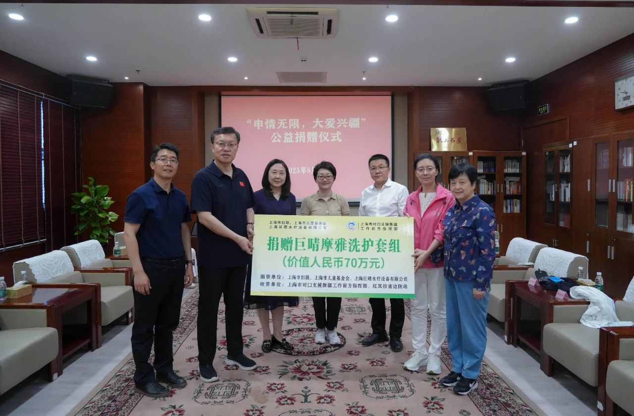 沪疆一家亲,爱在边关行 在上海市妇女联合会的悉心指导下,2025年8月,上海市儿童基金会携手上海巨晴水疗设备有限公司共同发起专项公益捐赠行动,向上海对口支援新疆工作前方指挥部及红其拉甫边防总站捐赠总价值70万元的“巨晴摩雅洗护套组”。此次爱心行动旨在为长期坚守祖国边陲、默默奉献的边防一线工作人员送去关爱与支持,传递温暖与敬意。